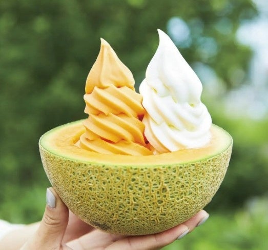 夕張メロンの果汁を使ったソフトクリームはSNS映えも。
