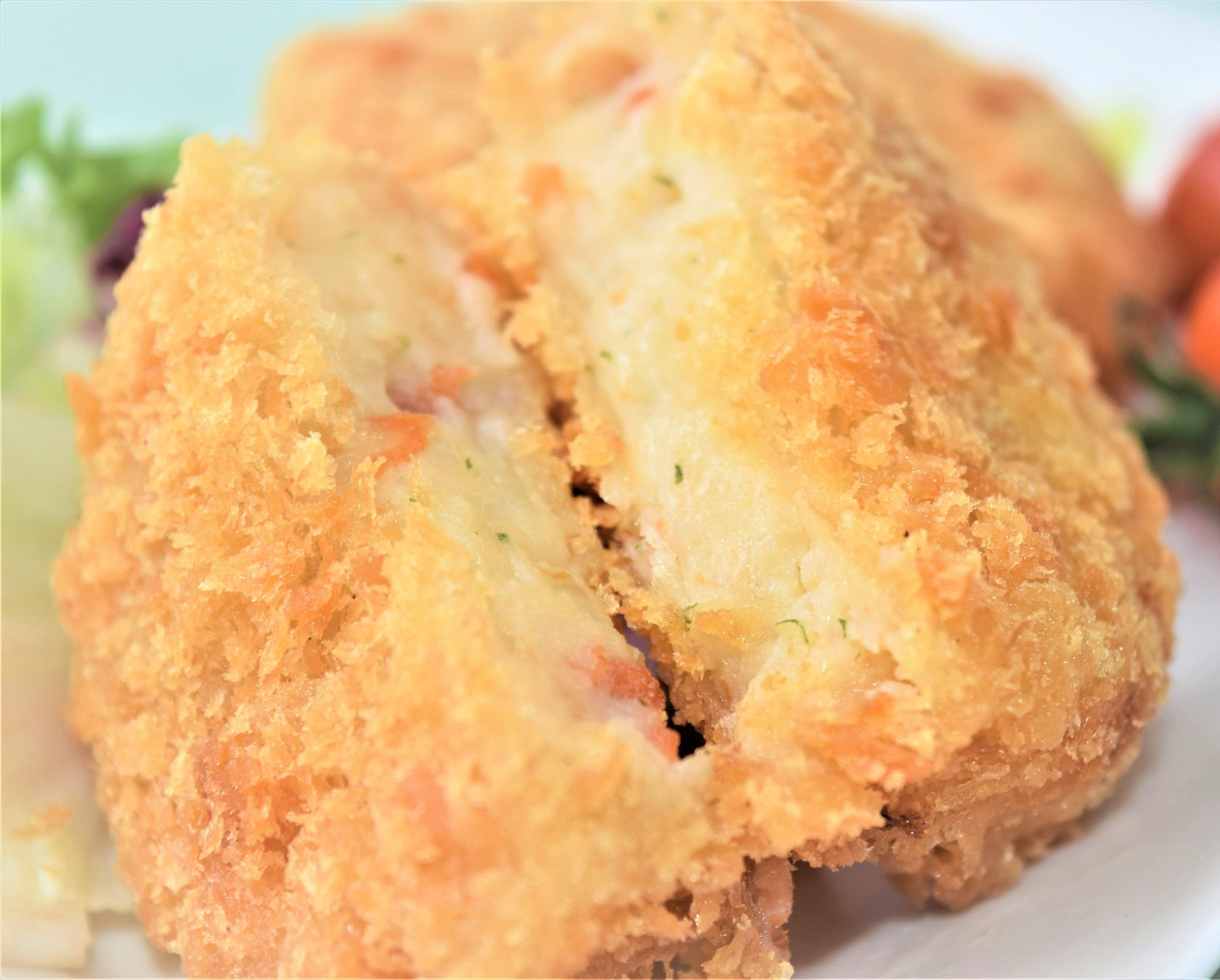 男爵いもにチーズとスモークサーモンを練り込みました。