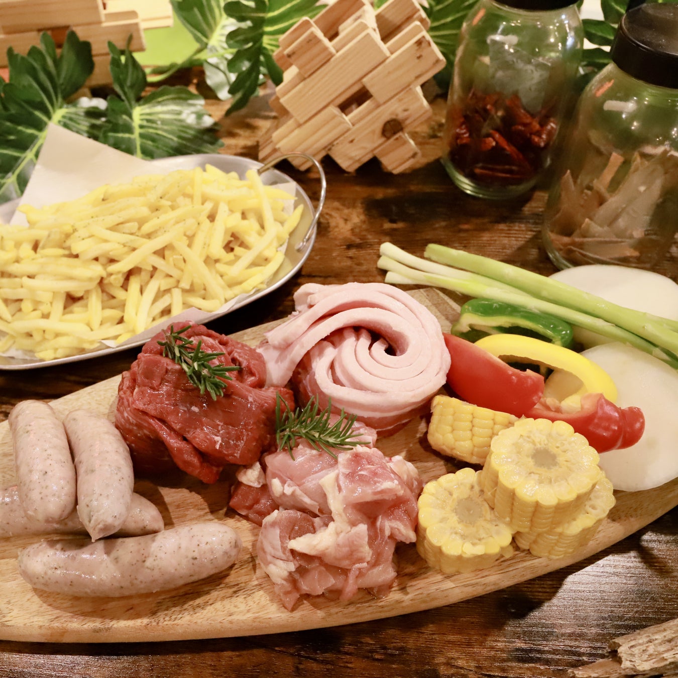豚、鶏、ソーセージ、新鮮野菜も付いていて満足いただけるプランです★