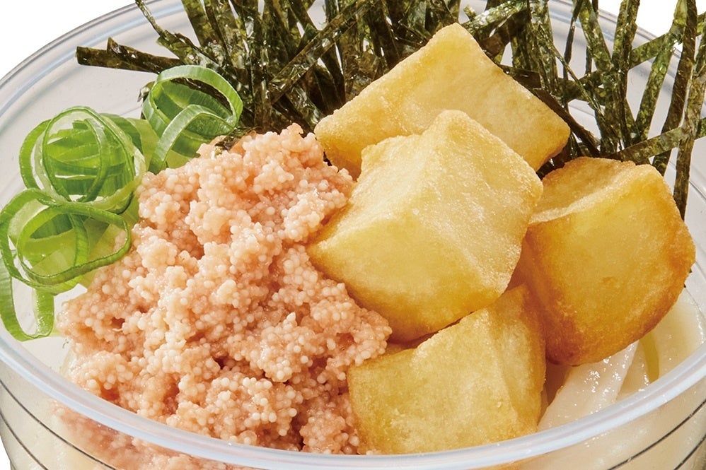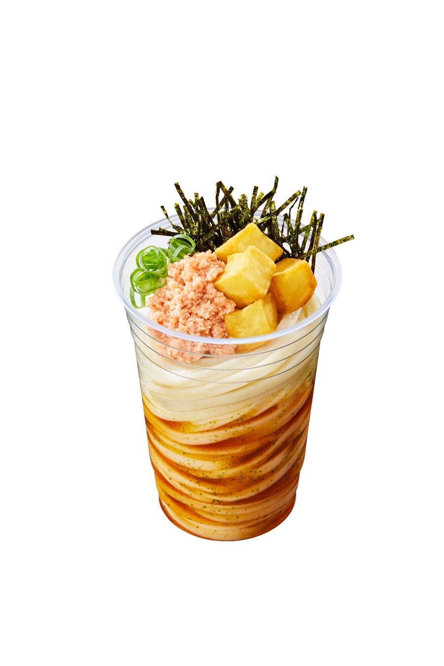 さっぱりとした特製青じそぶっかけだしに、旨みたっぷりのたらこ、ポテトの組み合わせが相性抜群の一杯。シェイクすることでポテトにたらこの旨みと青じそのさっぱりとした味わいが程よく染みて、おいしさは倍増。刻みのりの風味も際立ち、やみつきになること間違いなしです。