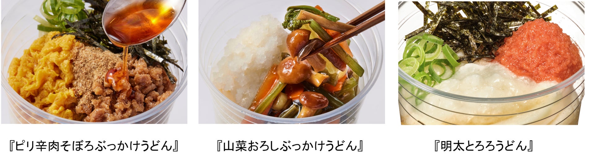 ※『ピリ辛肉そぼろぶっかけうどん』『山菜おろしぶっかけうどん』 『明太とろろうどん』は好評発売中です。