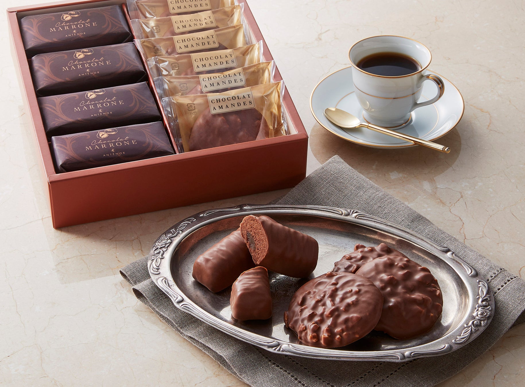 【内 容】 ショコラ・マローネ(4 個)、ショコラ・アマンド(6 個)