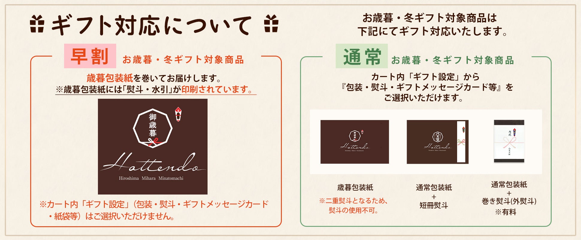 早割商品については、あらかじめ歳暮包装紙を巻いてお届けします。