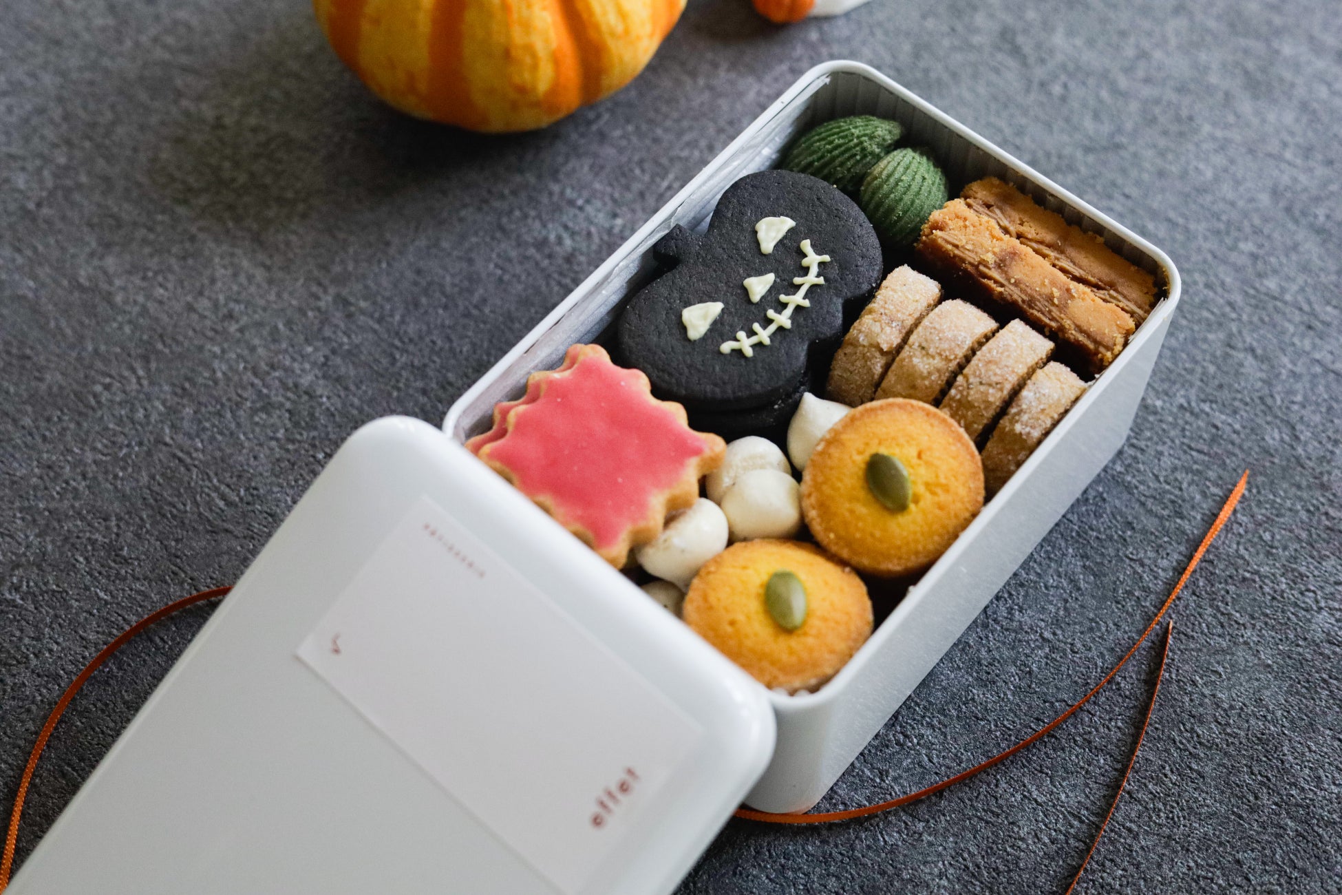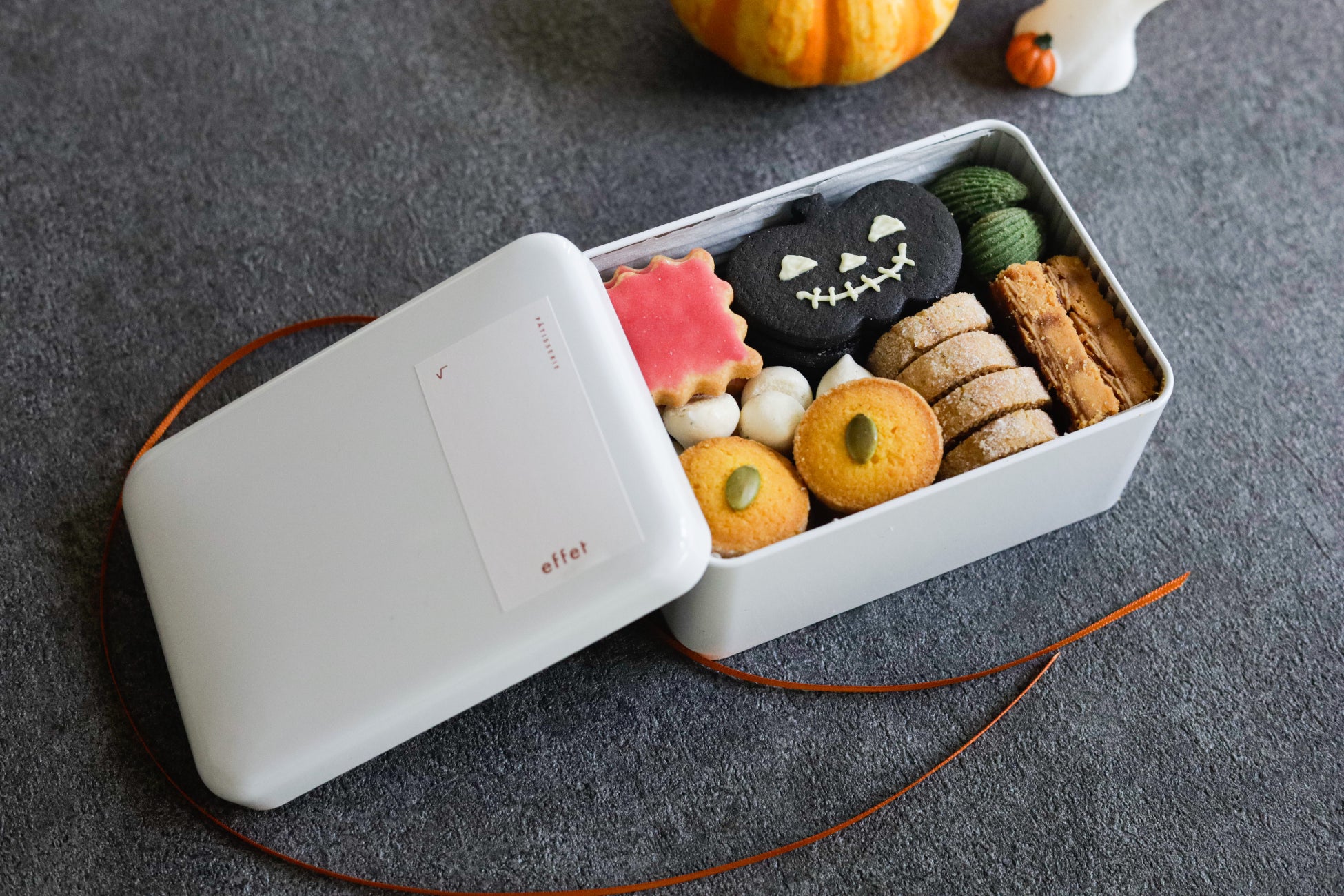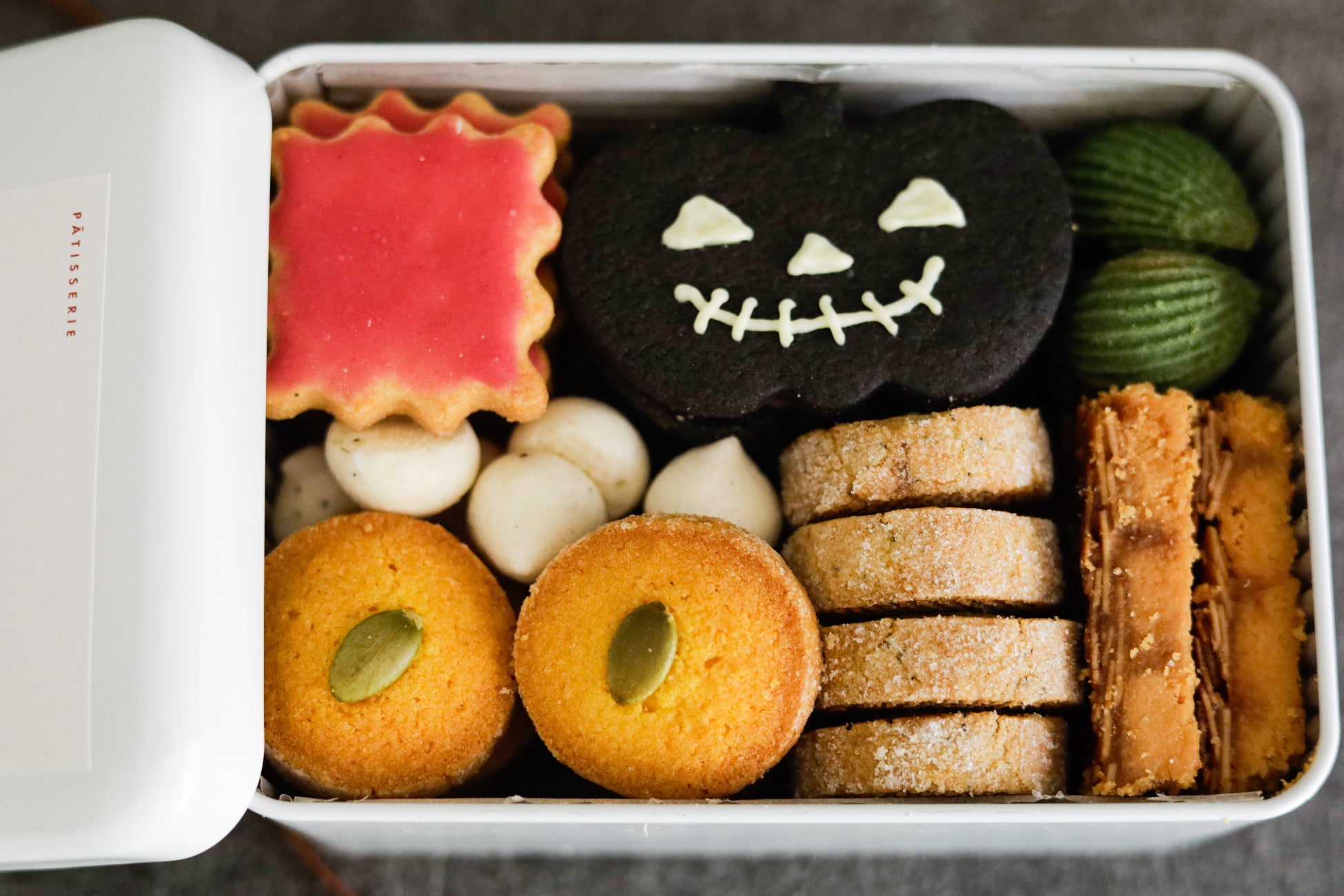 また、現在は期間・数量限定でハロウィンのクッキー缶もご用意しています!かわいい!