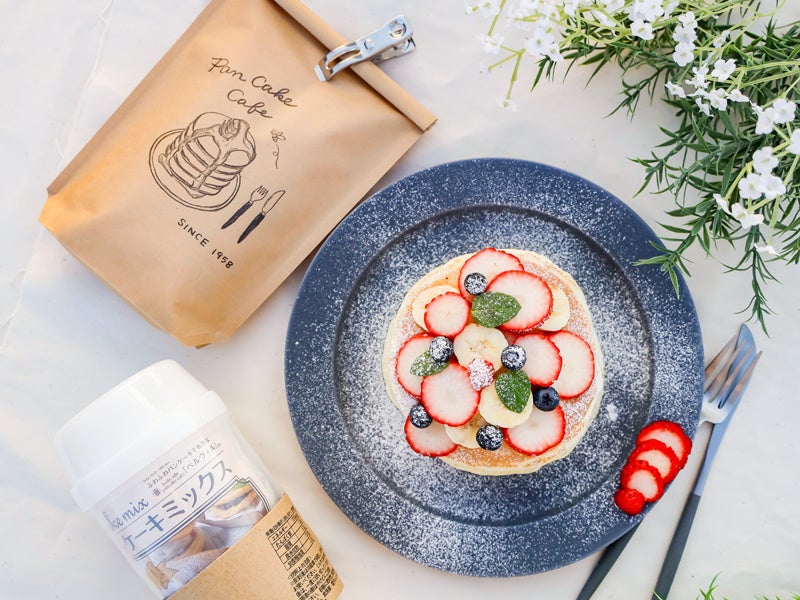 ミルクを入れて振って焼くだけで完成する『ふるふるパンケーキミックス』はお子さまと一緒にパンケーキ作りを楽しんでいただけます。