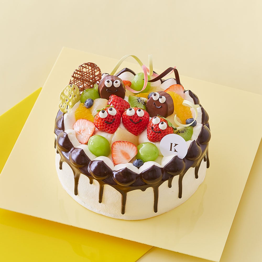 笑顔のイチゴやチョコバナナ、フルーツを飾り、チョコレートで周りをとろりとコーティング。