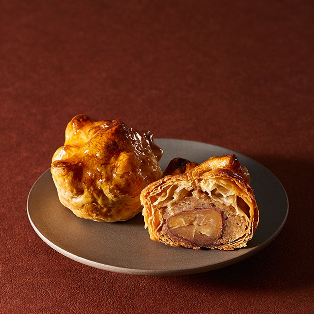 手間ひまかけて作り上げたサクサクのパイ生地には大粒の栗をまるごと1個とマロンペーストがたっぷり入っています。