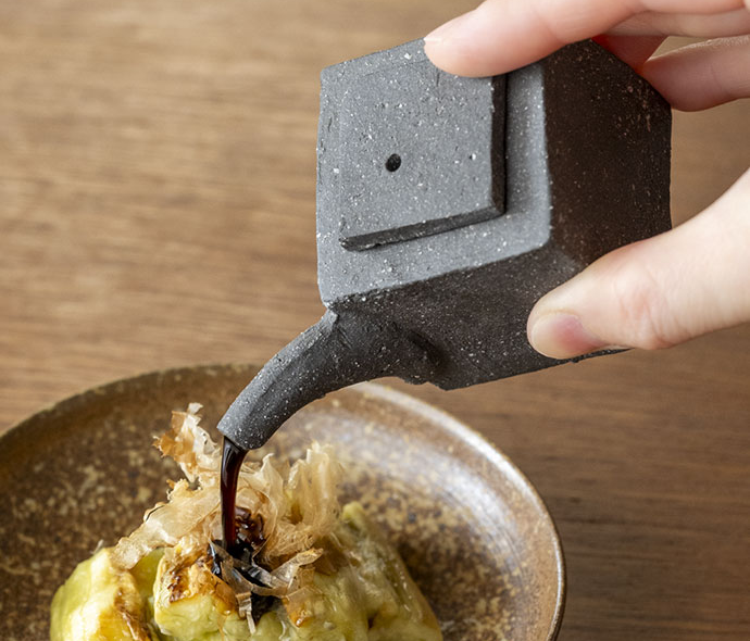 福岡の里山に佇むレストラン「御料理 茅乃舎」の卓上を創業時から飾ってきた醤油差しです。この度、お客様のお声に応えての発売です。