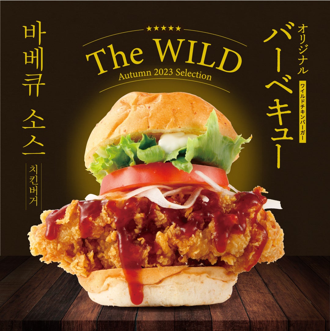 10月17日(火)より人気の「ワイルドチキンバーガー」のブラッシュアップメニューである”The WILD”シリーズの販売を開始いたします。第一弾はダークブラウンシュガー、濃厚な完熟トマト、リンゴ酢、ウイスキーを使い、独特でまろやかな味わいのバランスの取れた味わいに仕上げたバーベキューソースを使用した「ワイルドチキンバーガー オリジナルバーベキューソース(680円税込)」です。