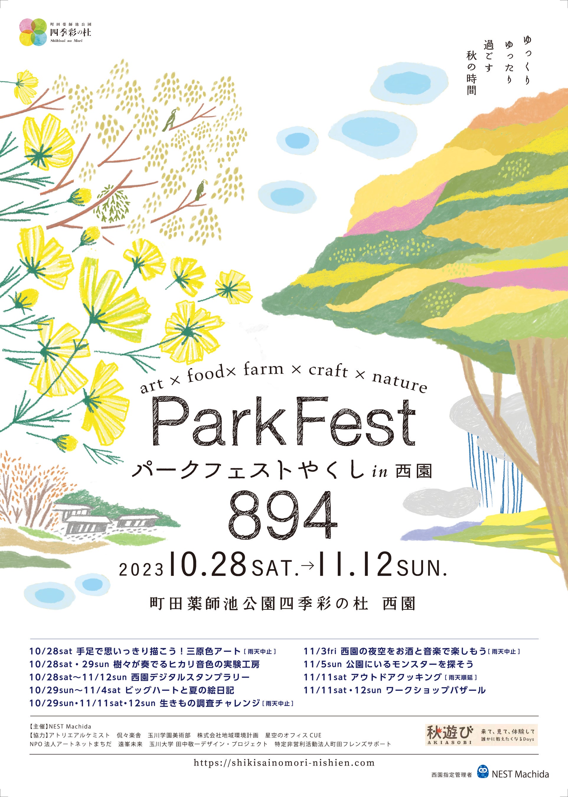 【秋は町田の自然豊かな公園で思いっきり遊ぼう】無料で参加できるイベントが盛りだくさん。「パークフェスト894(やくし) in西園」に参加して、たのしい、おいしい想い出をつくろう。
