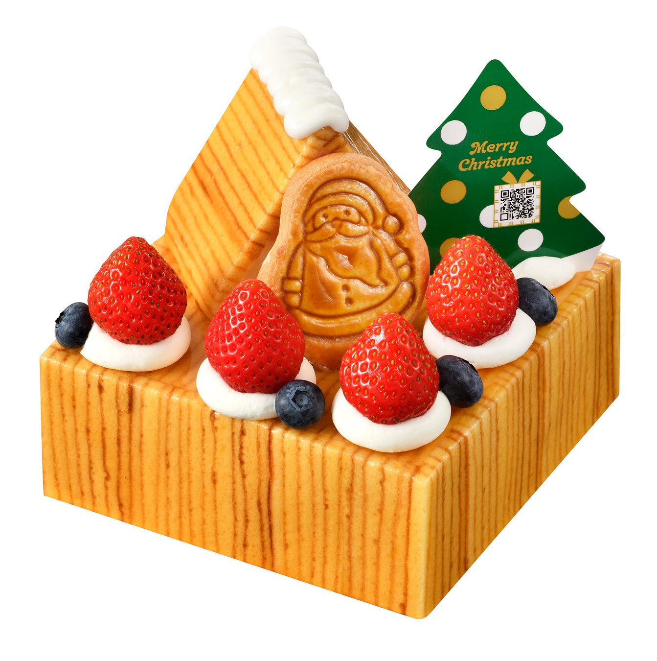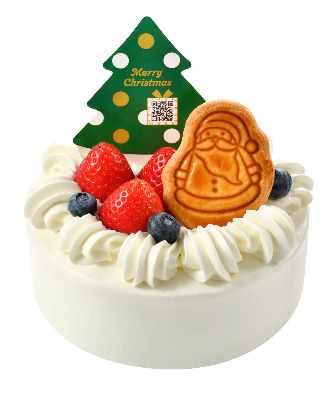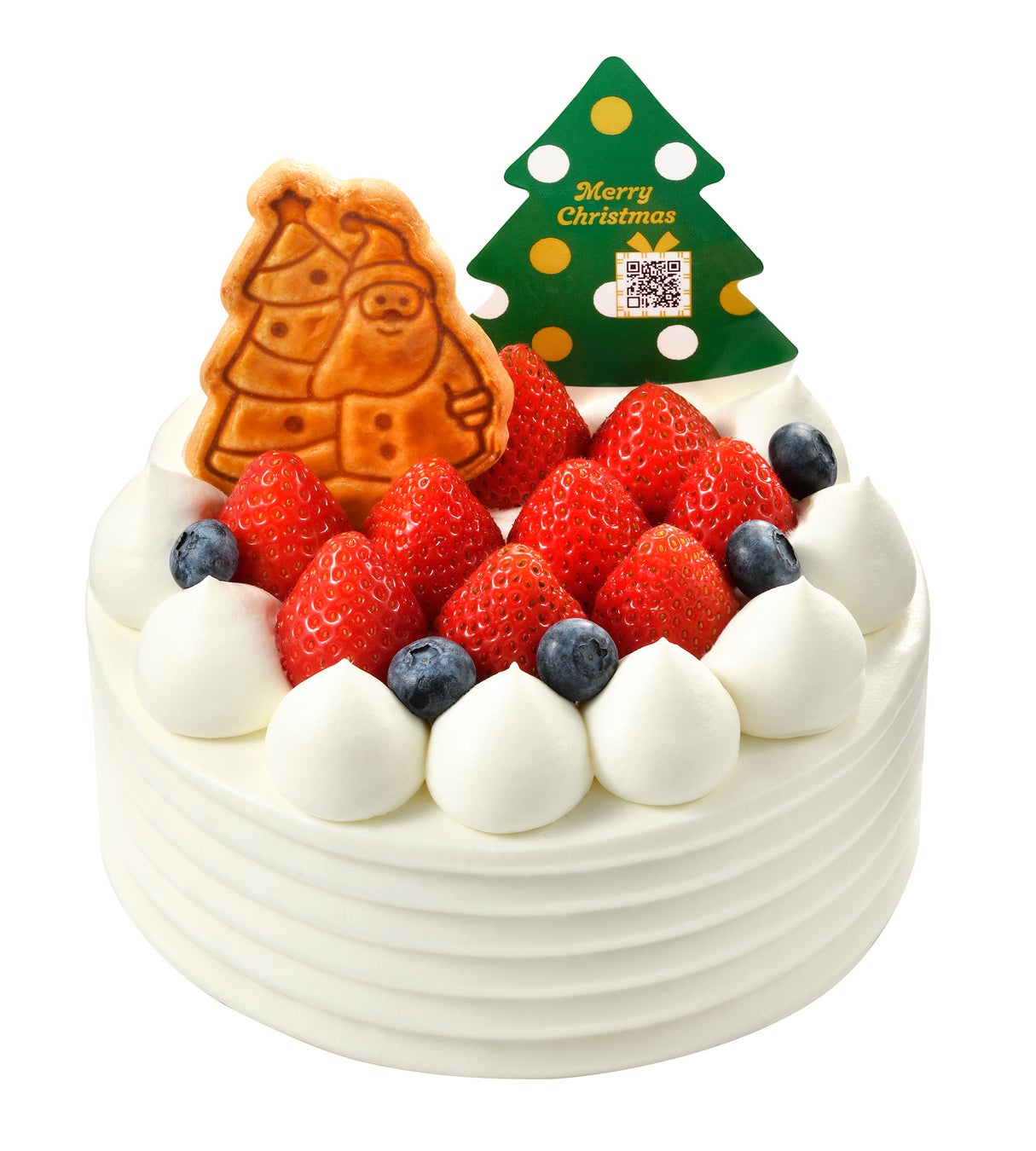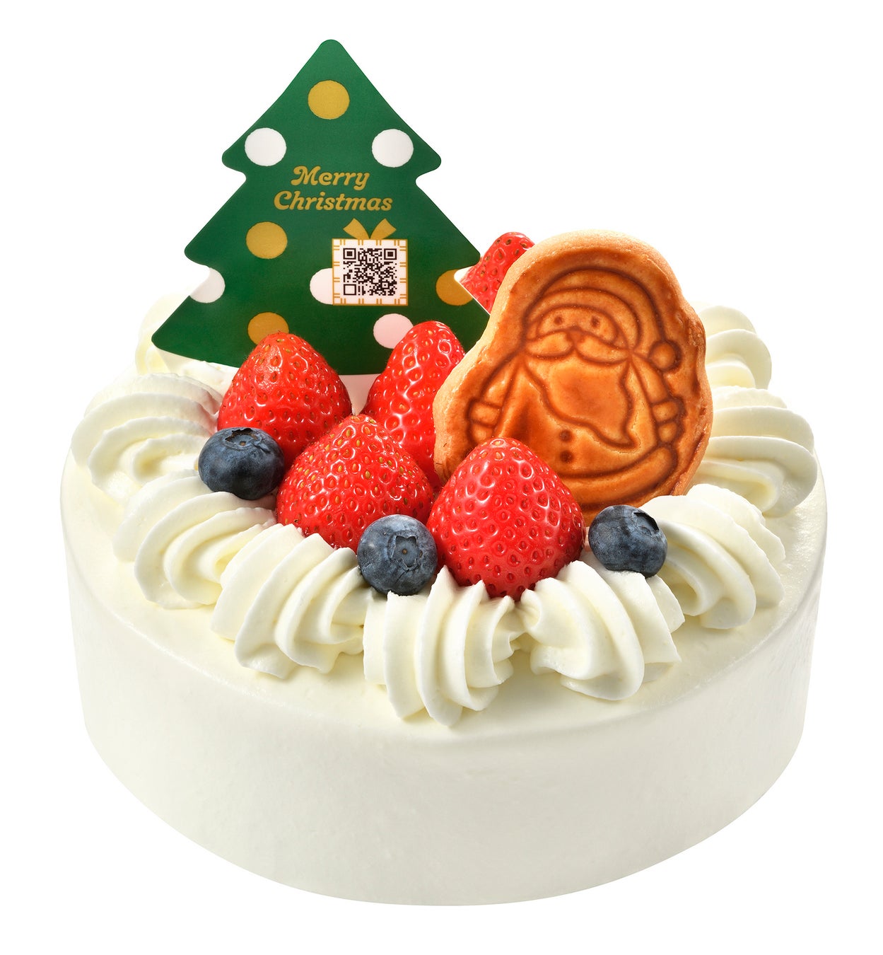 ふんわりスポンジと口どけのよいコクのある生クリームに、フレッシュな苺とブルーベリーをデコレーションしたクリスマスケーキ。苺を2段にサンドした、苺を堪能できるケーキです。