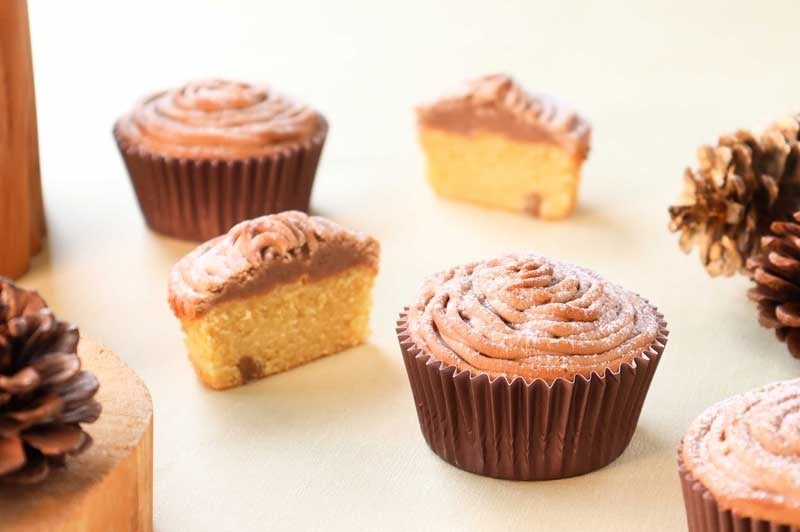 きび糖を使用したコクのあるマドレーヌに、刻んだマロングラッセを散りばめ、濃厚なマロンクリームを絞った香ばしい焼きモンブランのカップケーキです。1個 ¥ 300(税込)