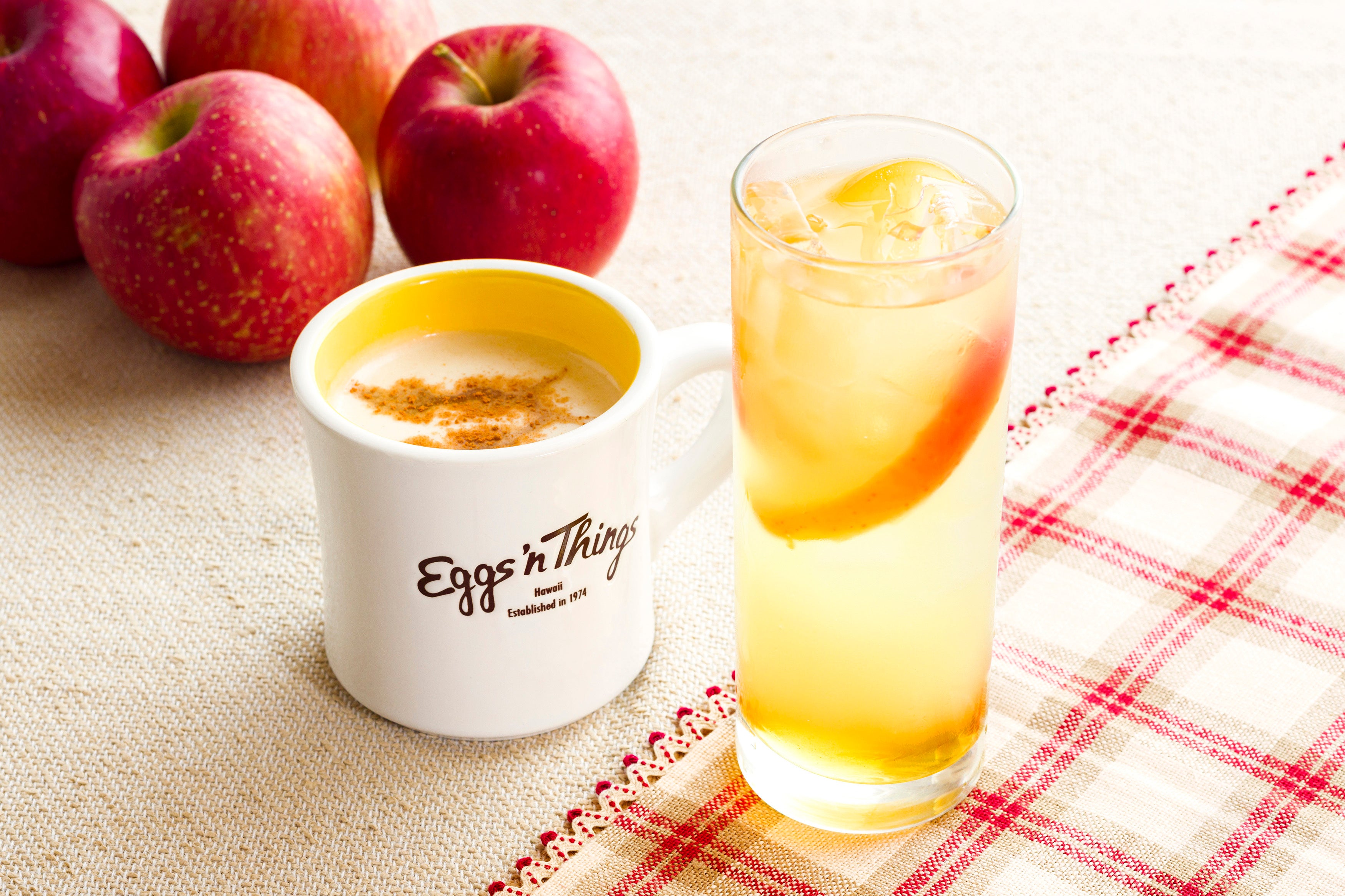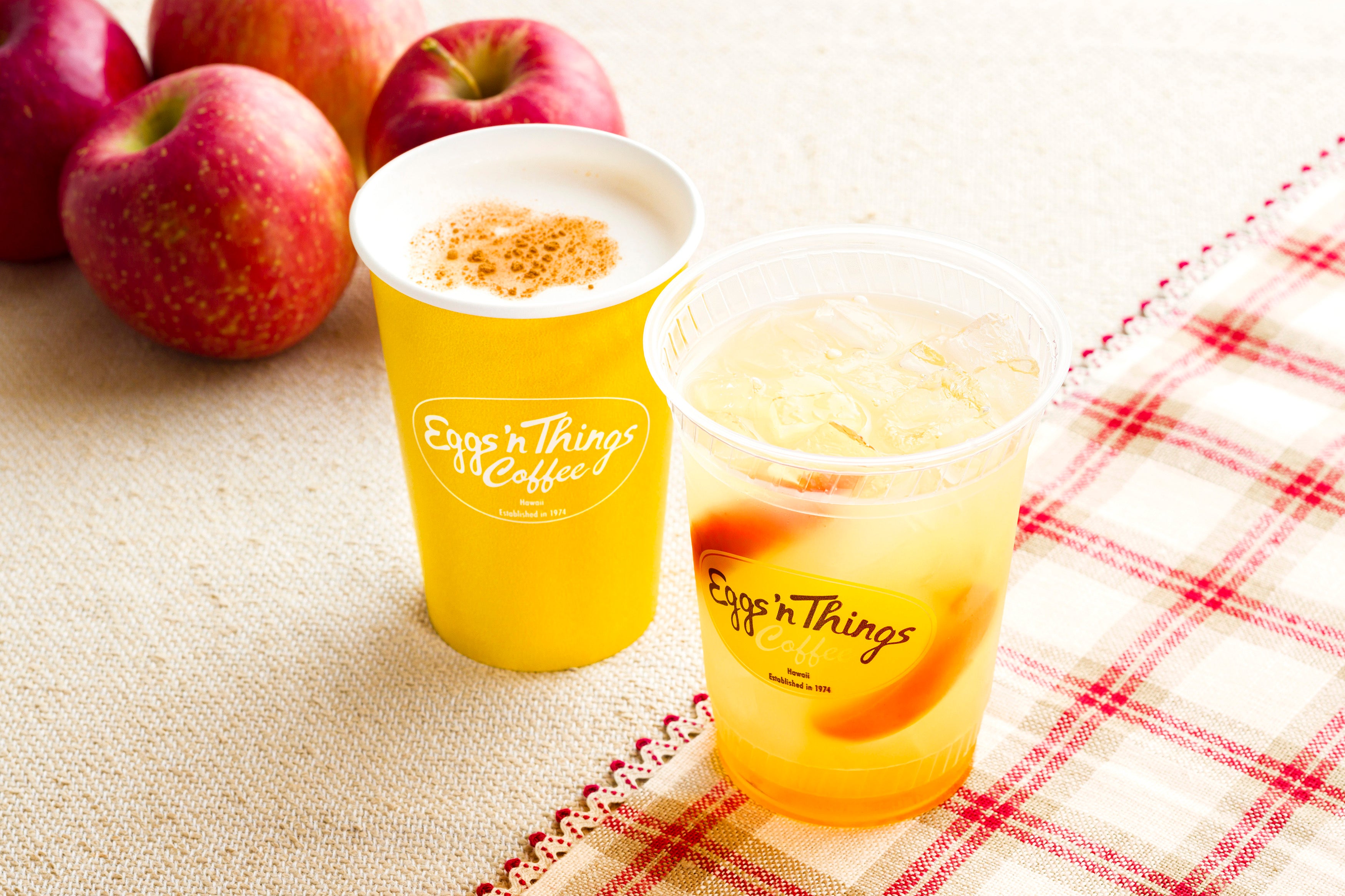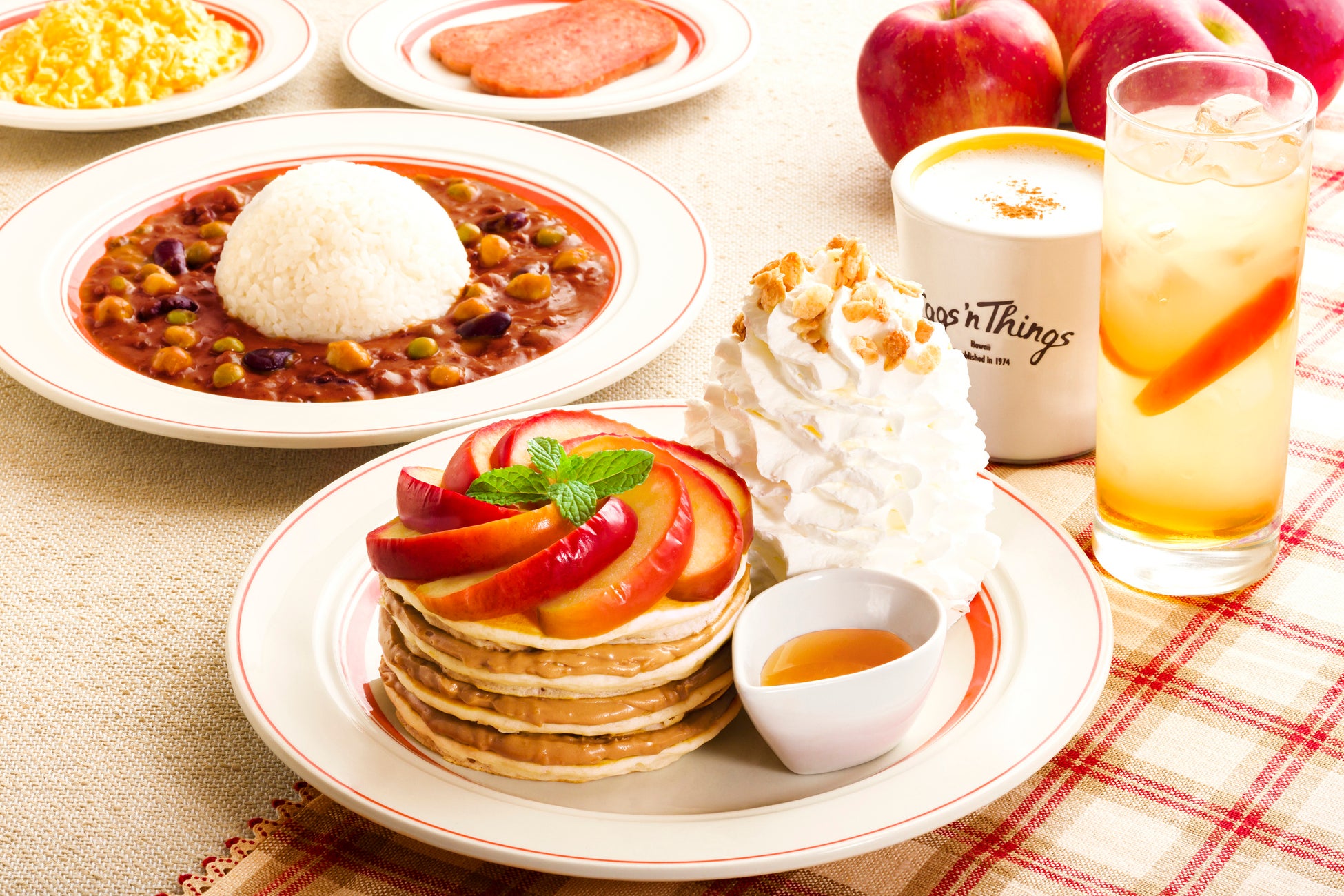 Eggs ’n ThingsおよびEggs ’n Things Coffee全店舗で『リンゴとキャラメルのパンケーキ』と『エグスンチリライス』を11月1日(水)~11月24日(金)の期間限定で販売いたします。『リンゴとキャラメルのパンケーキ』は、香り高いリンゴのコンポートとサクッとしたキャラメルクリームにふわもち食感のパンケーキが相性抜群の一皿です。ハチミツをかけることで味の変化もお楽しみいただけます。ハワイならではの『エグスンチリライス』は、スパイシーなチリビーンズにライスをのせた一皿。トッピング(追加料金)でさらに美味しくお楽しみください。また、アメリカで定番の濃厚なリンゴの風味にシナモンが効いた『アップルサイダー』も期間限定で販売いたします。