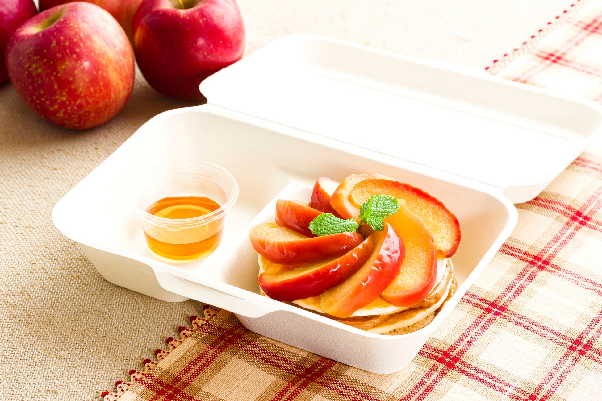 旬のリンゴのコンポートをたっぷりのせたパンケーキ。