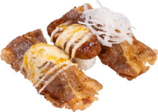 アンディの好物であるチーズバーガーにちなんだ「チーズバーグ寿司」と、大切りにした牛カルビの寿司を一皿で楽しめます。アンディらしい豪快でボリューム満点の商品です。