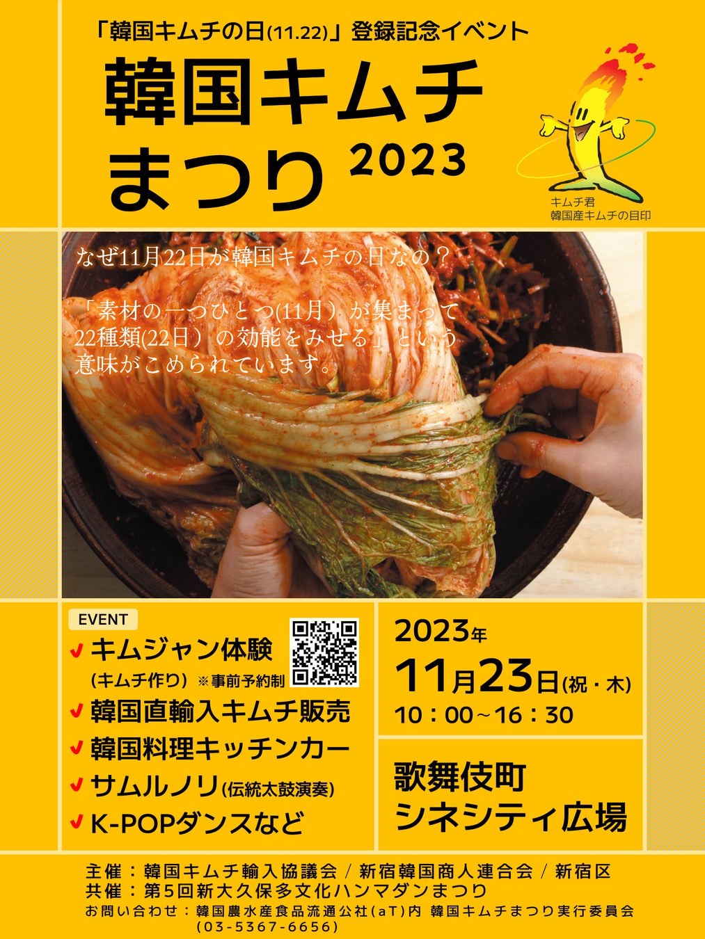 「韓国キムチの日」の記念日登録を祝して、東京都新宿区にある歌舞伎町シネシティ広場において「韓国キムチまつり2023」を開催いたします。