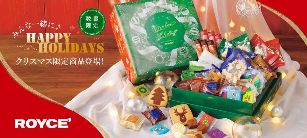 クリスマス限定商品を2023年11月1日より販売開始しました。贈り物にぴったりなギフトボックスや、今だけの特別なバウムクーヘン、クッキーなど、バリエーション豊かなラインナップです。ぜひロイズのお菓子をおともに素敵なホリデーシーズンをお過ごしください。