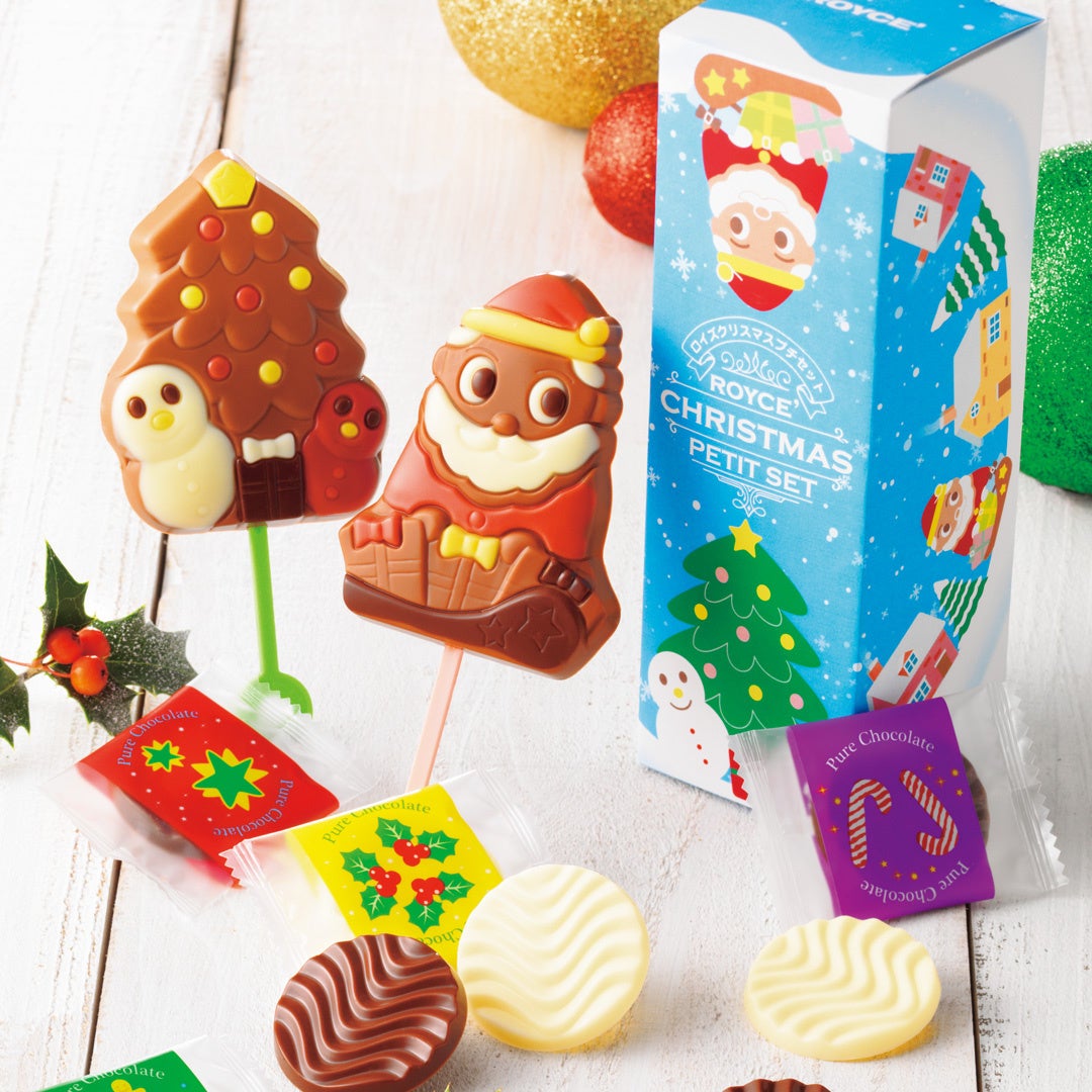 クリスマス限定のロイズポップチョコとピュアチョコレートの詰め合わせです。手軽なサイズ感でちょっとしたプレゼントにもぴったりな毎年人気の商品です。