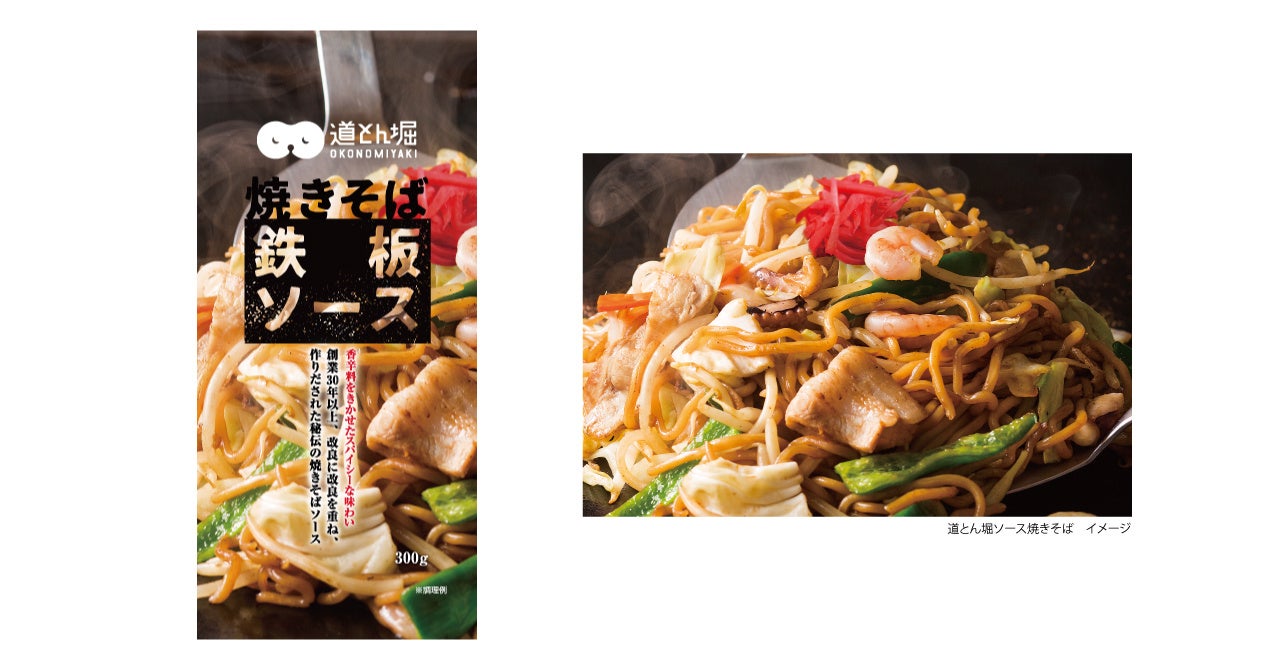 道とん堀のグランドメニューで使用している、「道とん堀オリジナルの焼きそばソース」を使用した「焼きそば」をたっぷり入れた商品です。