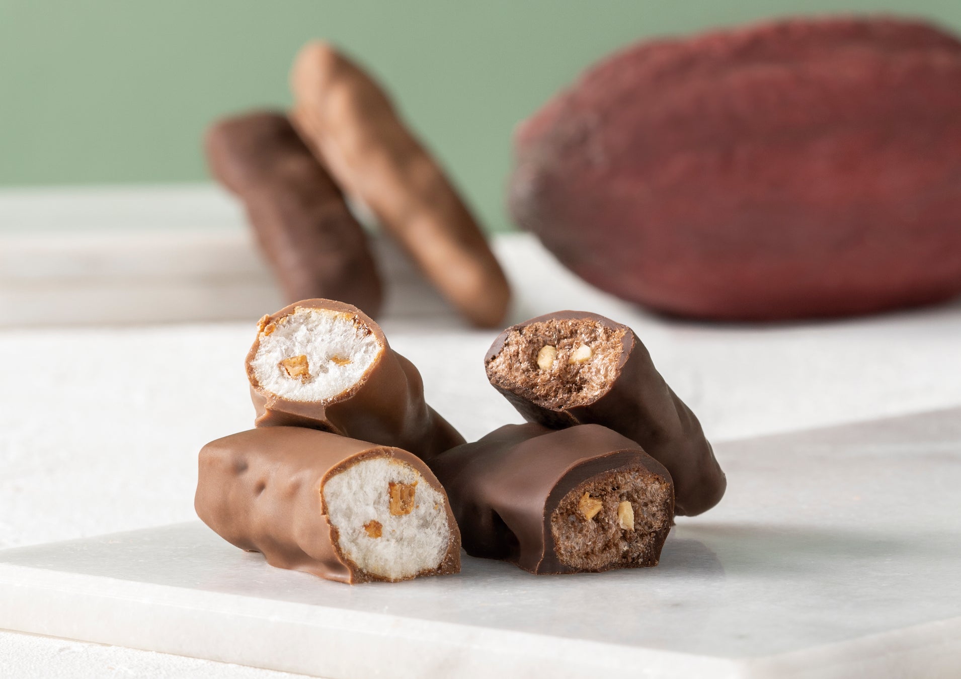 あられの生地にアーモンドを練り込み、お米の風味を感じることができるよう、こだわりました。お米の風味、醤油だれのコクと旨味、フレッシュフルーツのアロマがほのかに香るミルクチョコレートのバランスが絶妙に取れた、ハーモニー豊かなちょこあられに仕上げました。