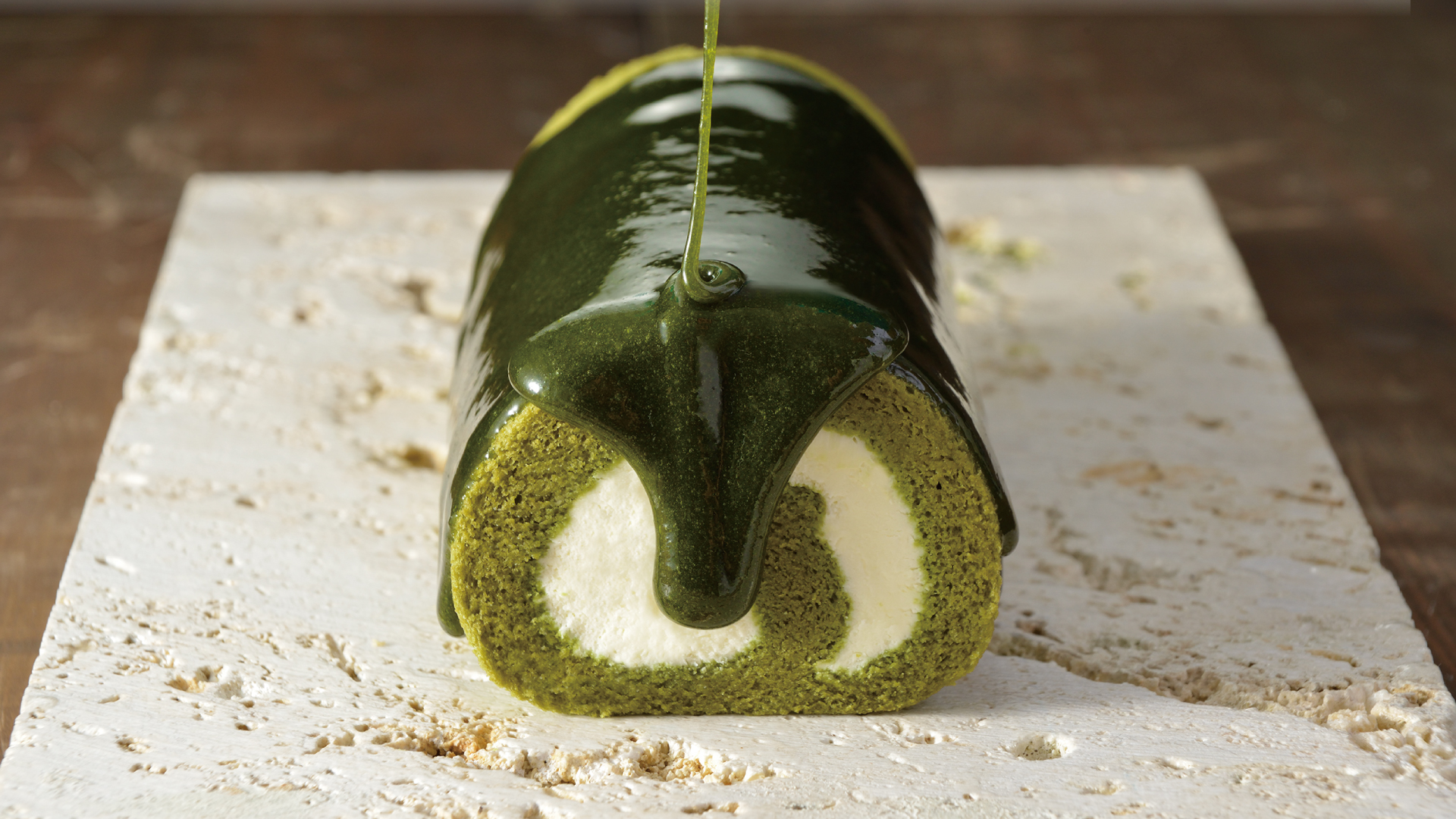 抹茶入のふわふわスポンジでなめらかなチーズクリームを優しく巻きました。 周りには抹茶のジュレを包み込み、全体の味を引き締めます。 ほろ苦さと濃厚なコクが味わえるロールケーキです。