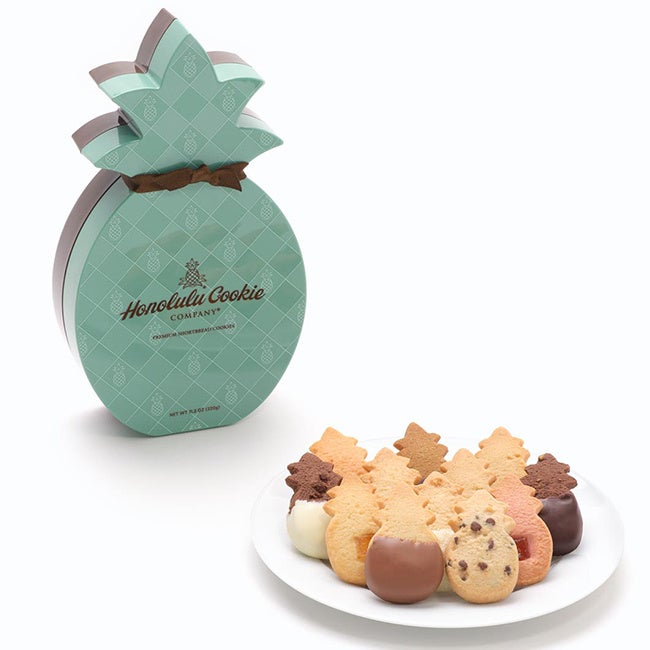 ハワイで大人気!パイナップル型が可愛いクッキーブランド〈ホノルル・クッキー・カンパニー〉が期間限定で大丸神戸店に初登場!人口添加物や着色料、保存料を一切使わず、天然の100%メイドインハワイ産の材料を厳選し、素材そのものの風味を味わえるクッキーです。マカデミアナッツ、コナコーヒー、チョコレートディップなど豊富なフレーバーや、サーフボードやパイナップル型のハワイらしいパッケージも人気の理由。