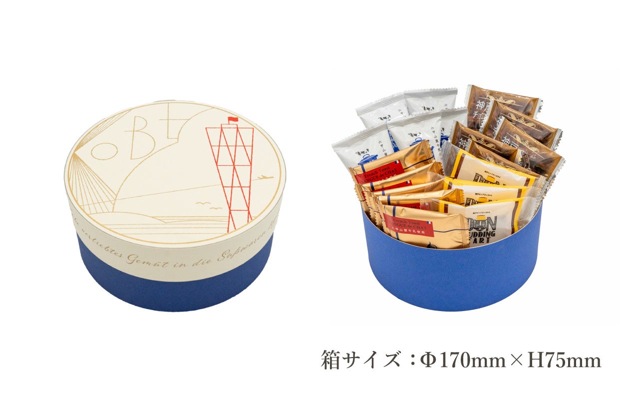 【神戸三宮フレンチトーストラングドシャ5枚】【神戸ミルクチョコラングドシャ5枚】【神戸ミルクヨーグルトパフェクッキー5個】【神戸ドン・プリン・タルト3個】を詰め合わせました。神戸をモチーフにした丸箱に詰め合わせたアソートBOXです。クリスマスプレゼントにも最適です。