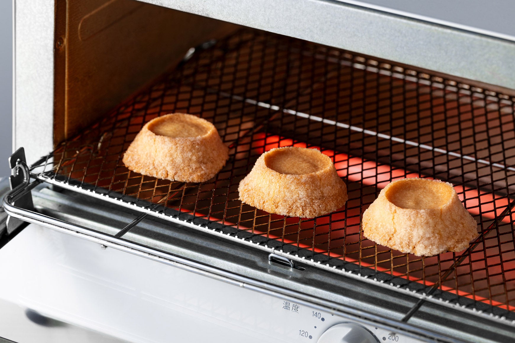 高配合バター生地は窯の熱で大量のバターがとろけだし、生地全体がなだれをうって広がりはじめます。その最良のポイントで焼き止める。これが、独自の「バターなだれとろけ製法」です。できあがるのは、王冠のような印象的な姿。豊富なバターの誇りの印です。