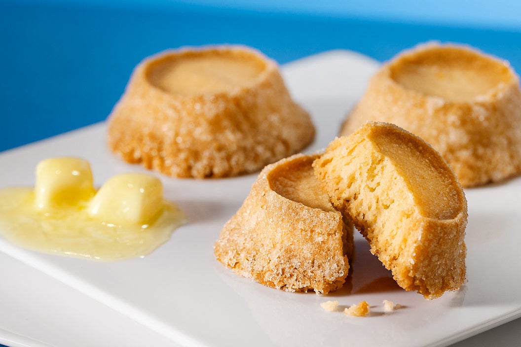なだれとろけたバターが焼かれながら生地にしみこむため、まるでバターで焦がしたようにこんがり香ばしい味わいが生まれます。さらにバターの流れた跡が細やかな溝になり、ザクッとほぐれる最高の歯ざわりも味わえるのです。