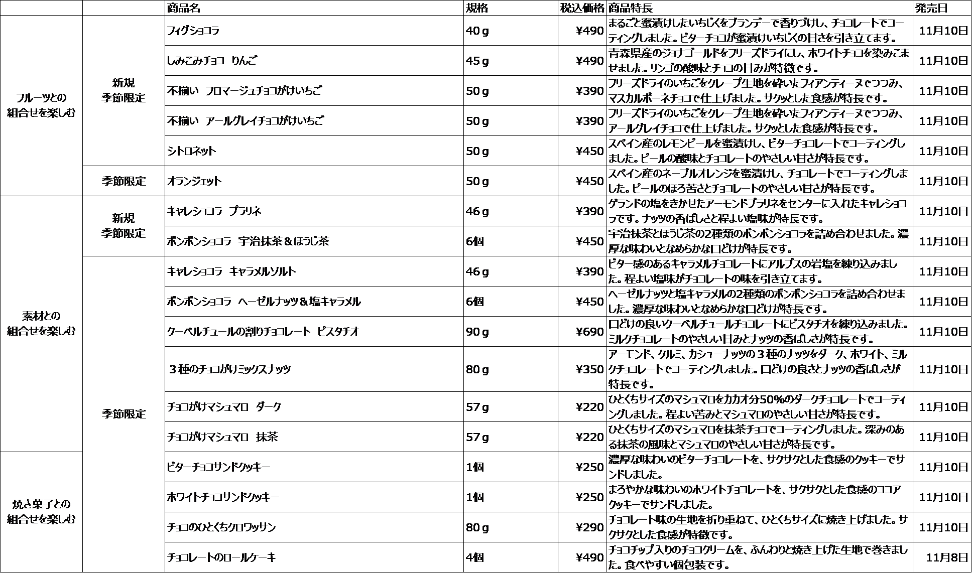11/8(水)・11/10(金)チョコレート菓子 18種 季節限定発売のお知らせ