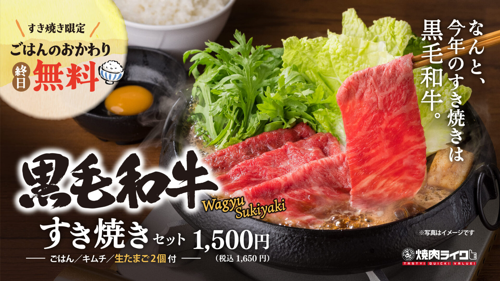 焼肉ライクであれば「一人すき焼き」もできる!手軽に贅沢な味わいが楽しめる『黒毛和牛すき焼き』が11月10日(金)から全国85店舗で販売開始。