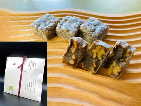 ロースト胡桃が入り、香ばしさが後を引く餅菓子は、伝統のお菓子を現代風にアレンジした一品です。