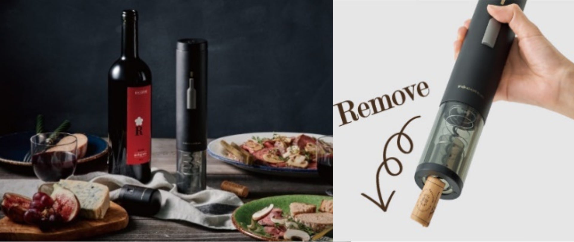 抜いたコルクもスイッチを押すだけで取り出しが可能で、力の弱い方やネイルした手にも優しい仕様です。電池式のコードレス仕様なので、アウトドアなどでもお使いいただけます。