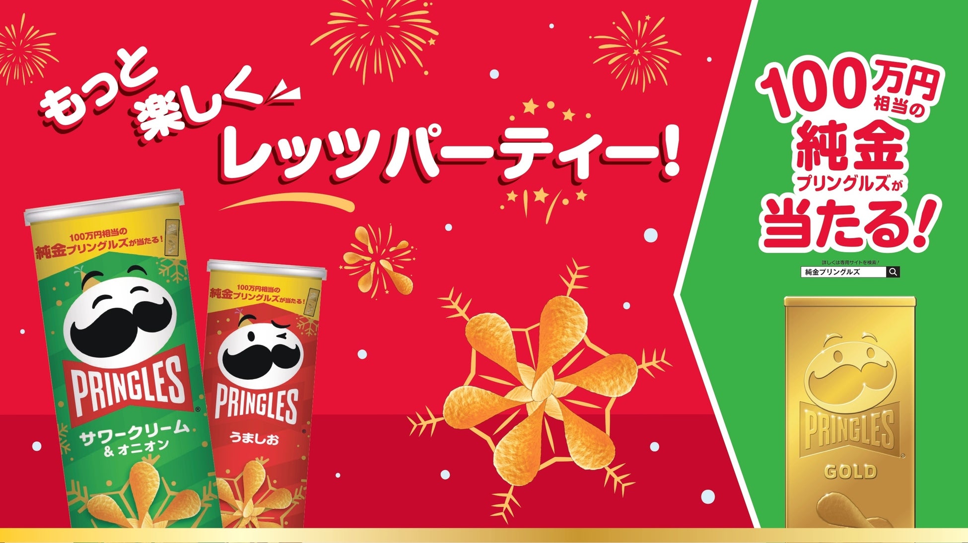 世界140か国以上で販売されているポテトチップスの代表ブランド「プリングルズ」は、100万円相当の純金プリングルズなど、豪華プレゼントが当たるキャンペーンを実施いたします。また、この冬限定パッケージのプリングルズも発売し、同時にWEB-CMもプリングルズ公式YouTubeにて公開いたします。家族や友人、仲間たちと集まる機会が多くなるシーズンに、この冬だけのプリングルズがワクワク感を盛り上げます。