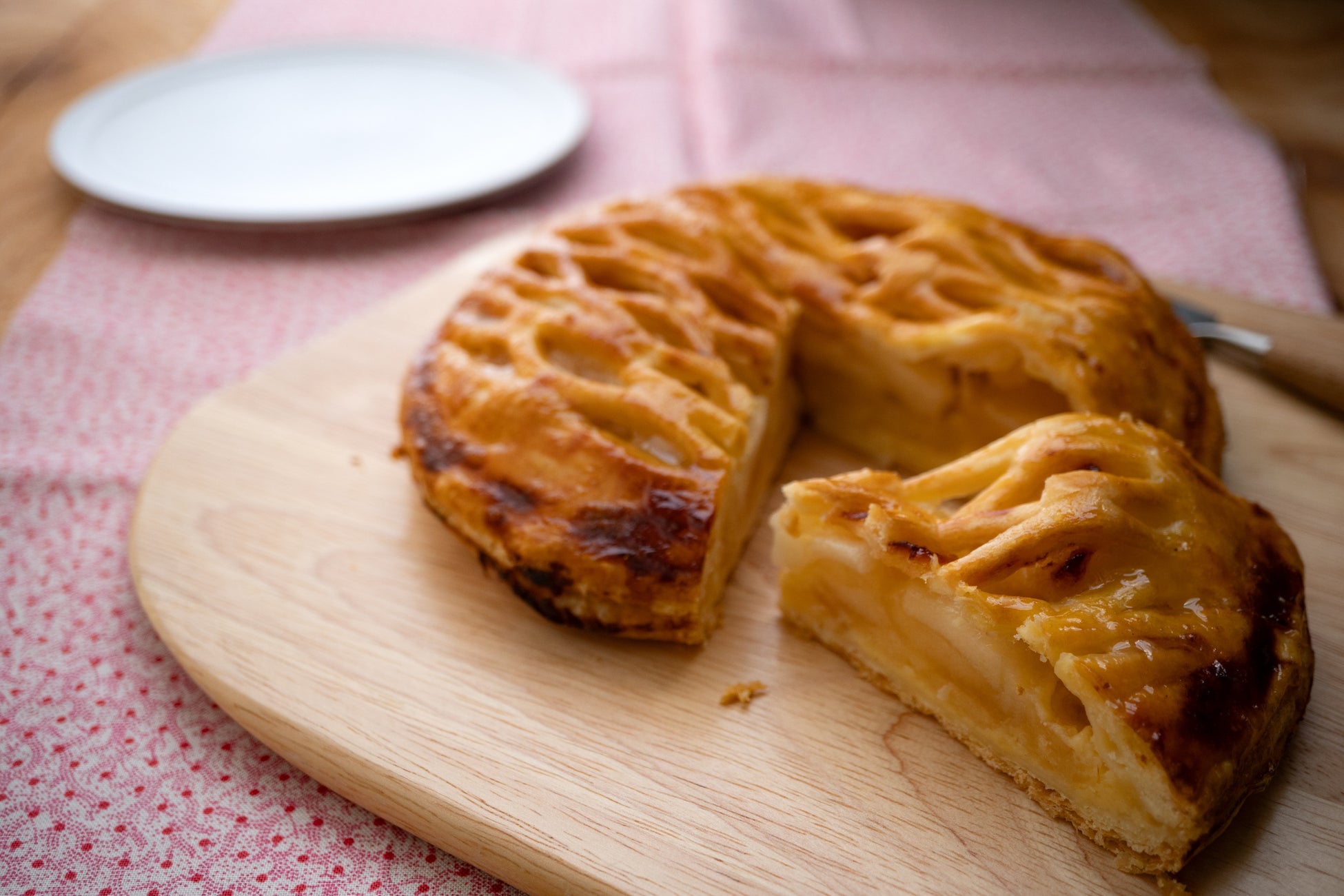 自社セントラルキッチンのパティシエがレシピを手掛けた一品。バターの風味豊かな自家製パイ生地に、ラム酒入り自家製カスタードクリームとりんご1個分を使用した自家製コンポートを詰め込み、40分ほどじっくり焼き上げました。りんごの酸味と甘みのバランスの心地よさをお楽しみください。