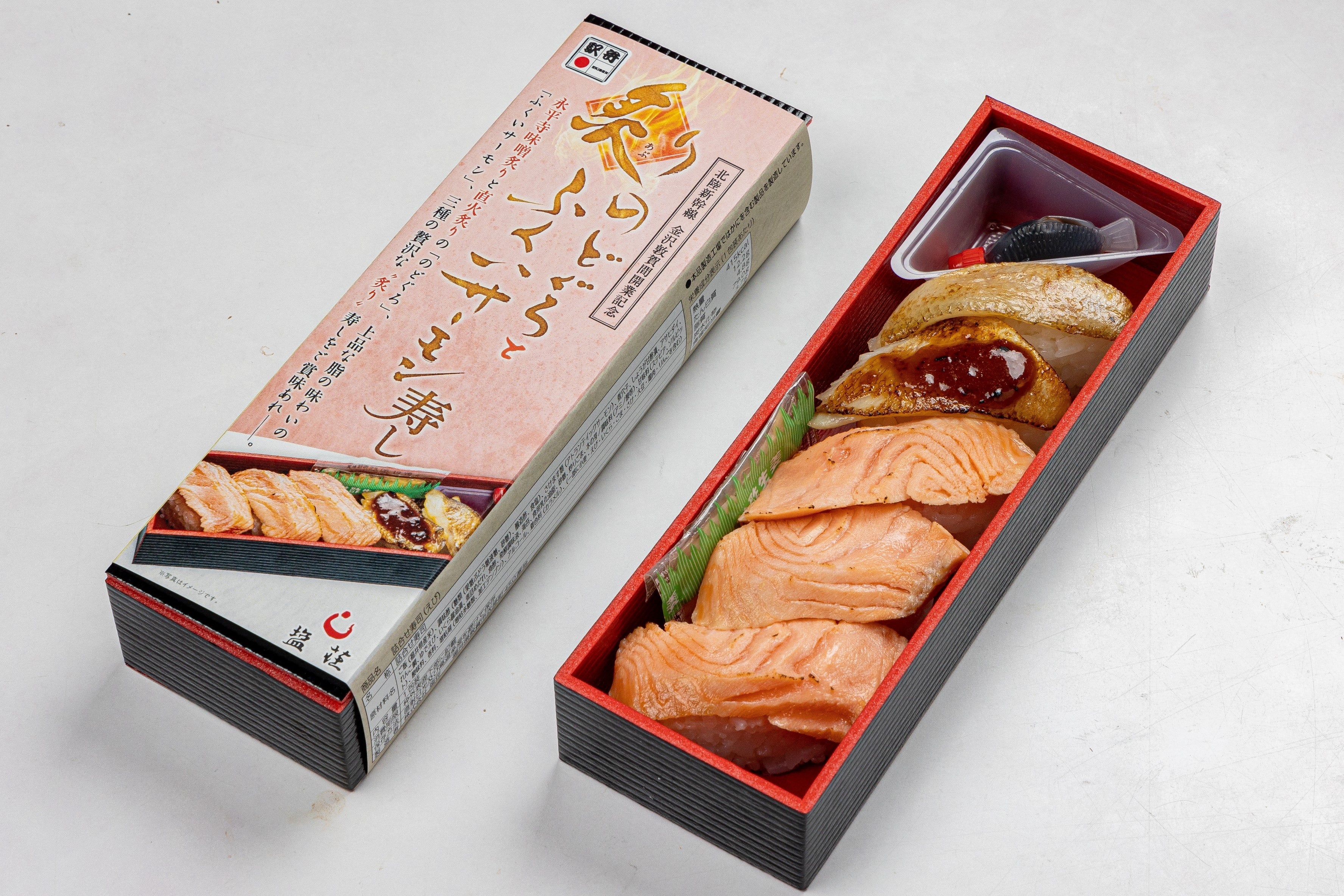 炙りのどぐろとふくいサーモン寿し 1,100円(福井県敦賀駅 塩荘)