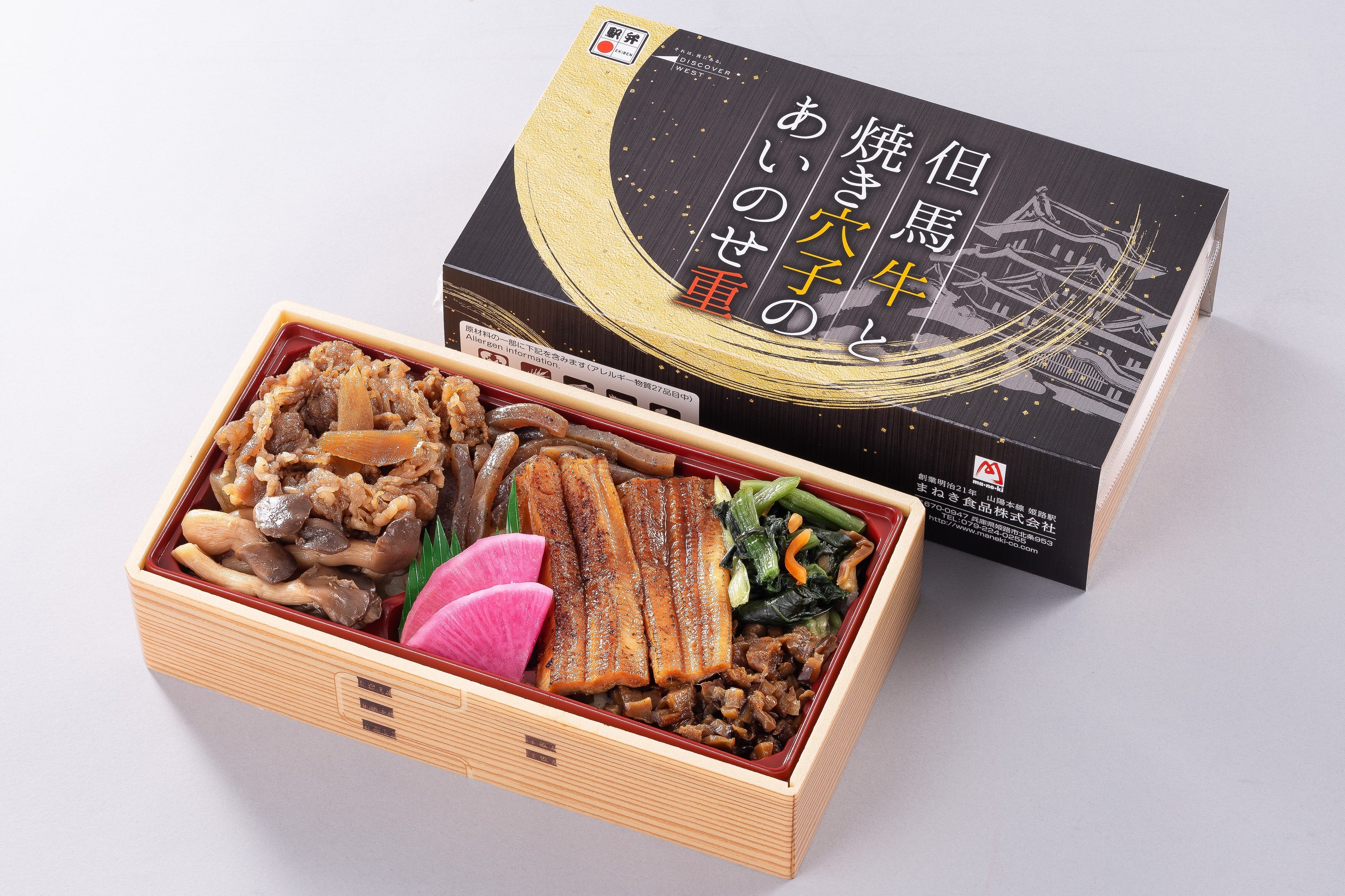但馬牛と焼き穴子のあいのせ重 1,250円(兵庫県姫路駅 まねき食品)