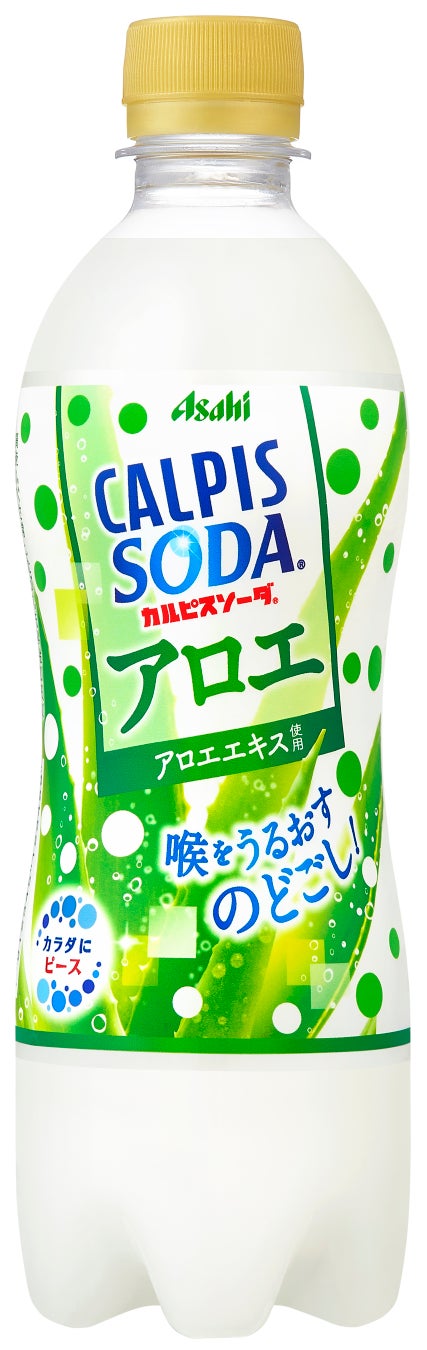 『カルピスソーダ アロエ』は、発売50年で初めて、『カルピスソーダ』にアロエベラ(葉肉部)エキスを一部使用した乳性炭酸飲料です。微炭酸で程よい刺激の『カルピスソーダ』に、爽やかな香りと潤いのイメージを持つアロエエキスを組み合わせることで、心地よく喉を潤してくれるのどごしを実現しました。乾燥する冬のリフレッシュシーンにぴったりな商品です。