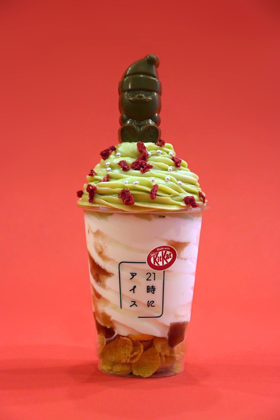 夜アイス専門店”21時にアイス”と”サンタ型キットカット”のコラボレーションメニュー「クリスマスソフト Made with キットカット ホリデイサンタ」 11月16日(木)より全国47店舗で提供開始