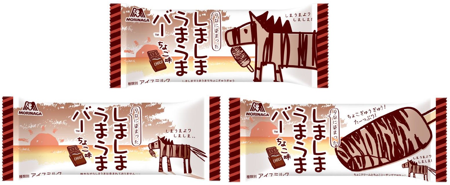 バニラアイスにチョコが層状に入ったアイスバー「しましまうまうまバー」は、ぎゅうぎゅうに詰まったチョコの味わいと、どこを食べても楽しめるパリパリの食感、ユニークなパッケージデザインにより、大変好評をいただきました。このたび発売する「夕日に染まったしましまうまうまバー<ちょこ味>」は、チョコアイスにしましま状のチョコをたっぷり入れたチョコ尽くしのアイスバーです。パッケージには、全体がチョコ色になったアイスを、夕日に染まってセピア色になった“しまうま”に見立てて表現しております。チョコ系フレーバーの需要が高まる秋冬に、チョコも遊び心もたっぷりな「夕日に染まったしましまうまうまバー」の発売で、お客様に笑顔をお届けしてまいります。