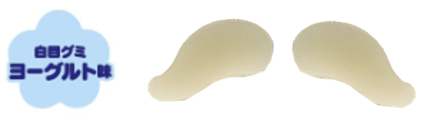顔パーツのグミは形だけでなく、唇はストロベリー味、白目はヨーグルト味などそれぞれ味が異なるのもポイント。