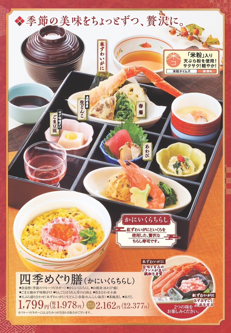 和食さと 冬の味覚 『ずわいがに』 や『いくら』 をった限定メニュー登場!!