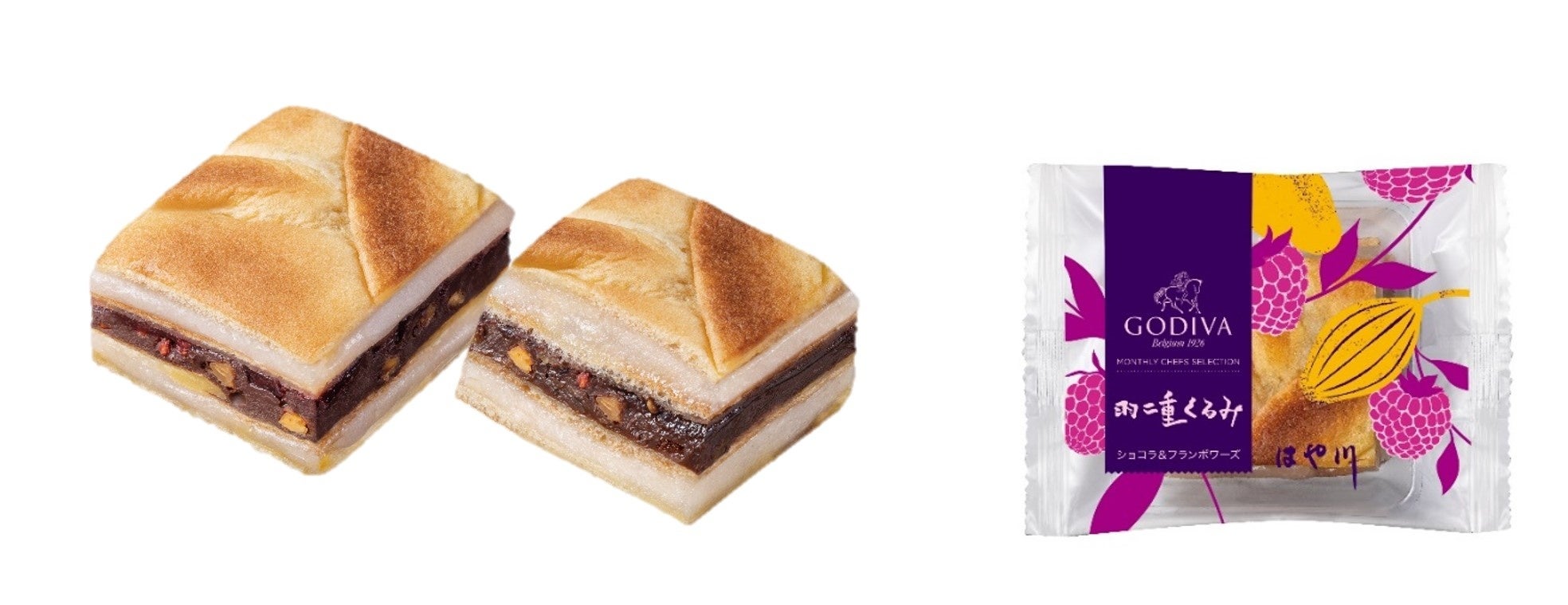 1926年、ゴディバと同じ年に創業した福井県の老舗和洋菓子店、はや川とのコラボレーションから誕生した「羽二重くるみ ショコラ&フランボワーズ」を発売します。