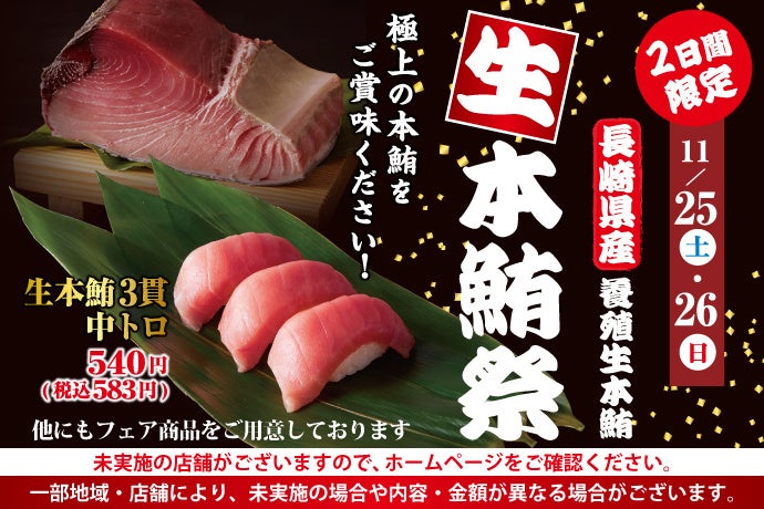 【小僧寿し】「生本鮪祭」開催!11月25日(土)・26日(日)2日間限定!長崎県産養殖生本鮪の販売を致します。“生”の状態で緊急入荷!この機会に小僧寿しへ!