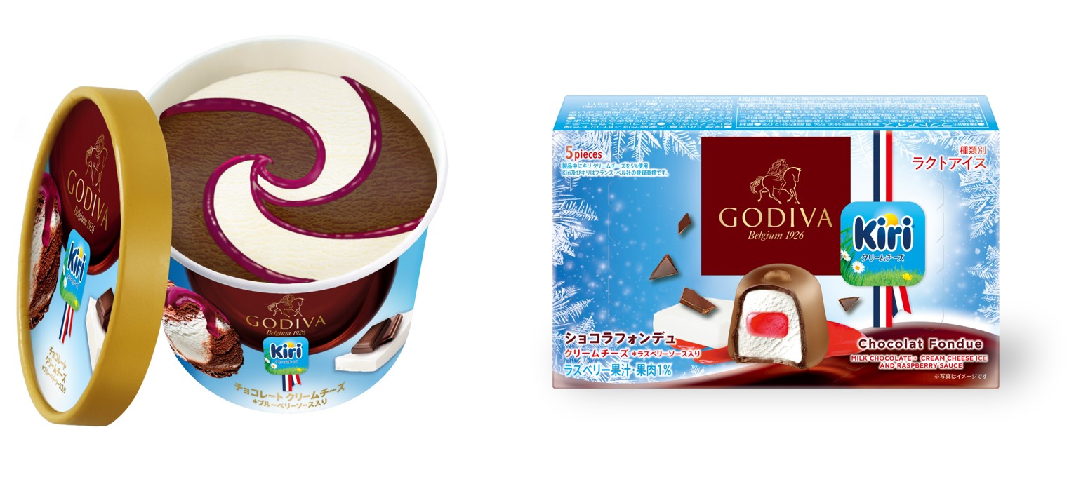 ゴディバとキリ®のコラボレーションから誕生したアイス「チョコレート クリームチーズ」、「ショコラフォンデュ クリームチーズ」