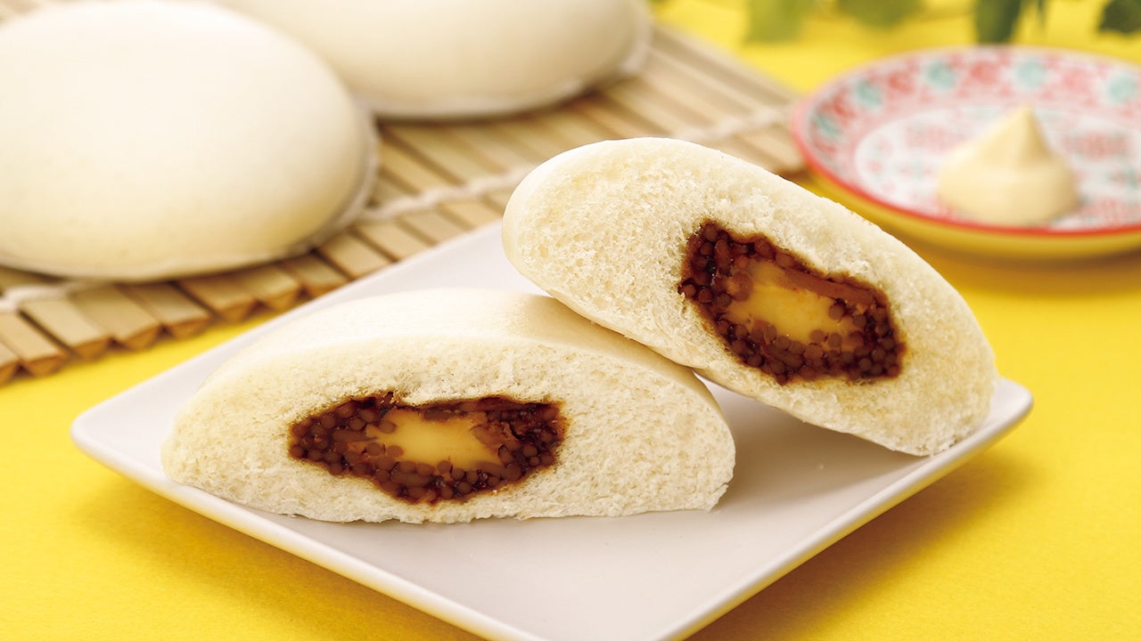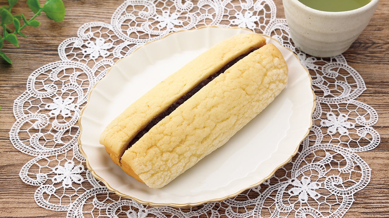 ミルク風味のパンに、ビスケット生地をのせて焼き上げ、つぶあんをサンドしました。最後まで、サンドされたつぶあんとビスケット生地の和洋のコントラストが楽しめます。