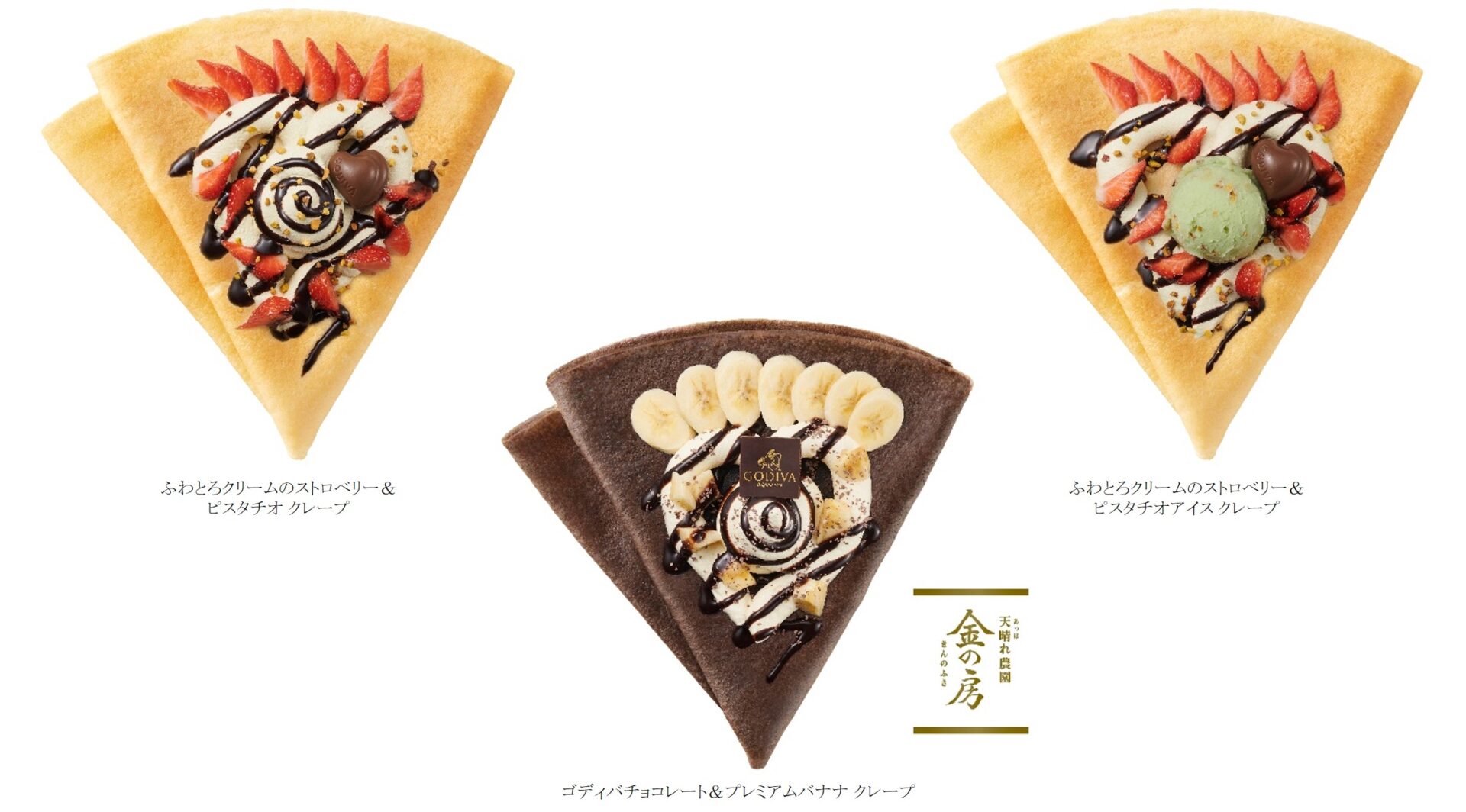また、バナナとチョコレートがベストマッチする王道のクレープをリニューアル。『果肉ぎっしり。食感もっちり。豊富なデンプン質をじっくりと糖化した絶品の甘さ』が特長の、ユニフルーティーブランドのプレミアムバナナ「天晴れ農園 金の房」を使用した、チョコレート&バナナクレープ「ゴディバチョコレート&プレミアムバナナ クレープ」がゴディバ オリジナルクレープに加わります。