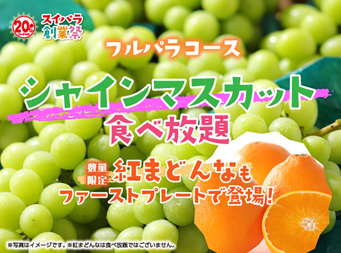 2023年12月13日(水)からのフルパラコースでは「シャインマスカット食べ放題~紅まどんな登場~」を開催いたします。
