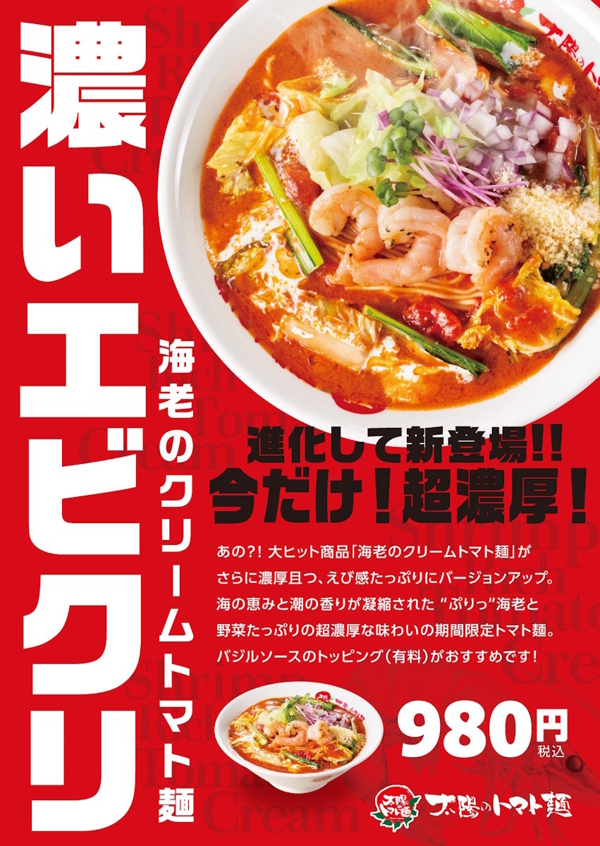 太陽のトマト麺・『濃いエビクリ』が10年の時を経て帰ってきた!12/12発売開始