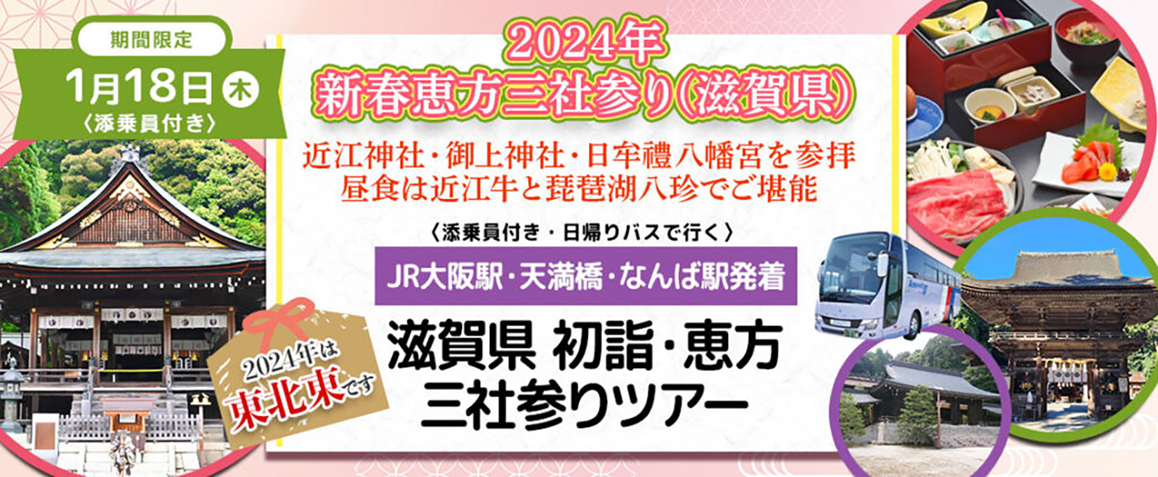 おひとり様12,300円 1月18日(木) 【滋賀県】〈大阪駅・天満橋・なんば発着・添乗員付き〉令和6年新春恵方三社初詣 新春の恵方東北東の三社詣り日帰りバスツアー
